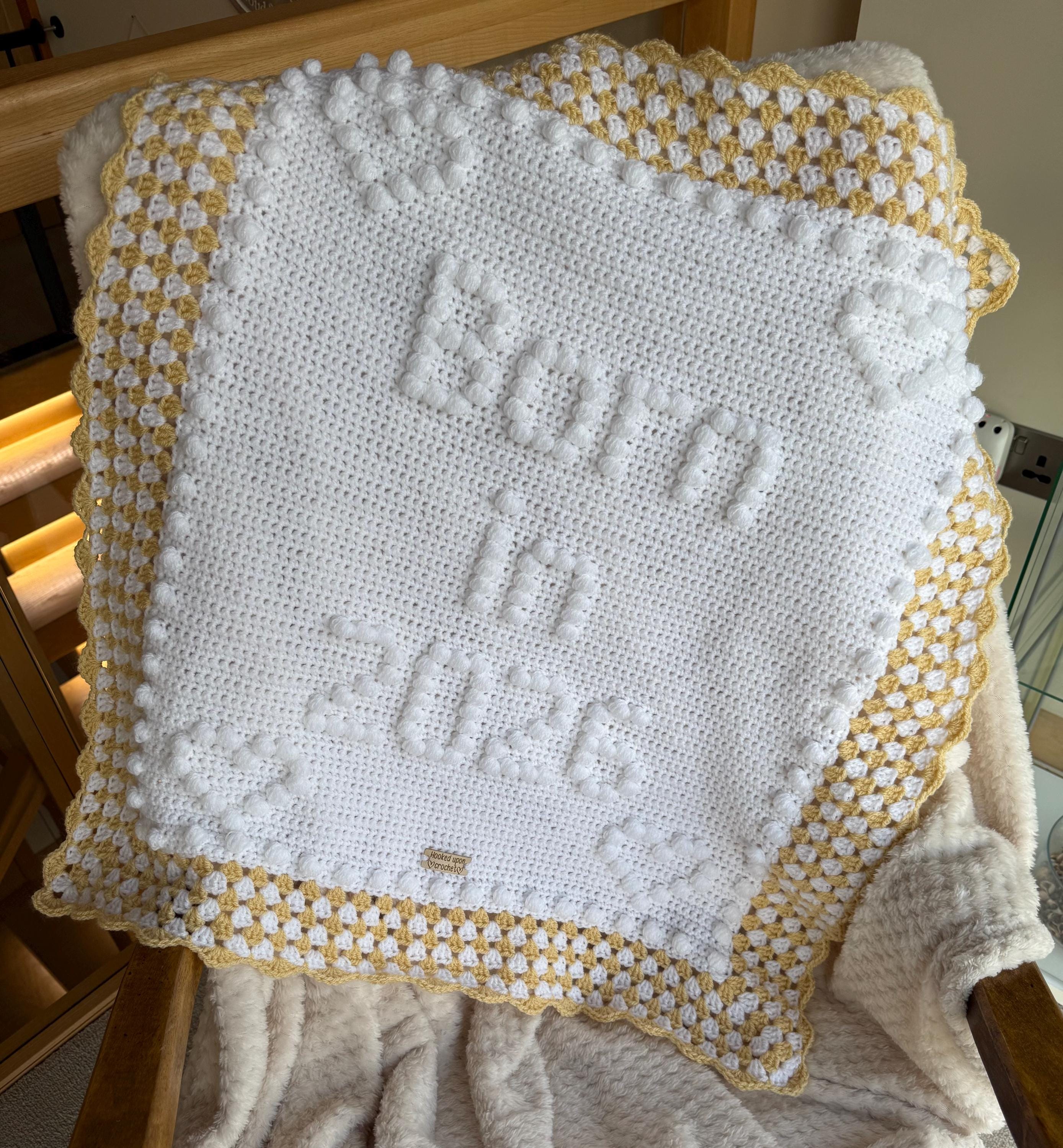 Born in 2025 blanket with a granny stitch border.
